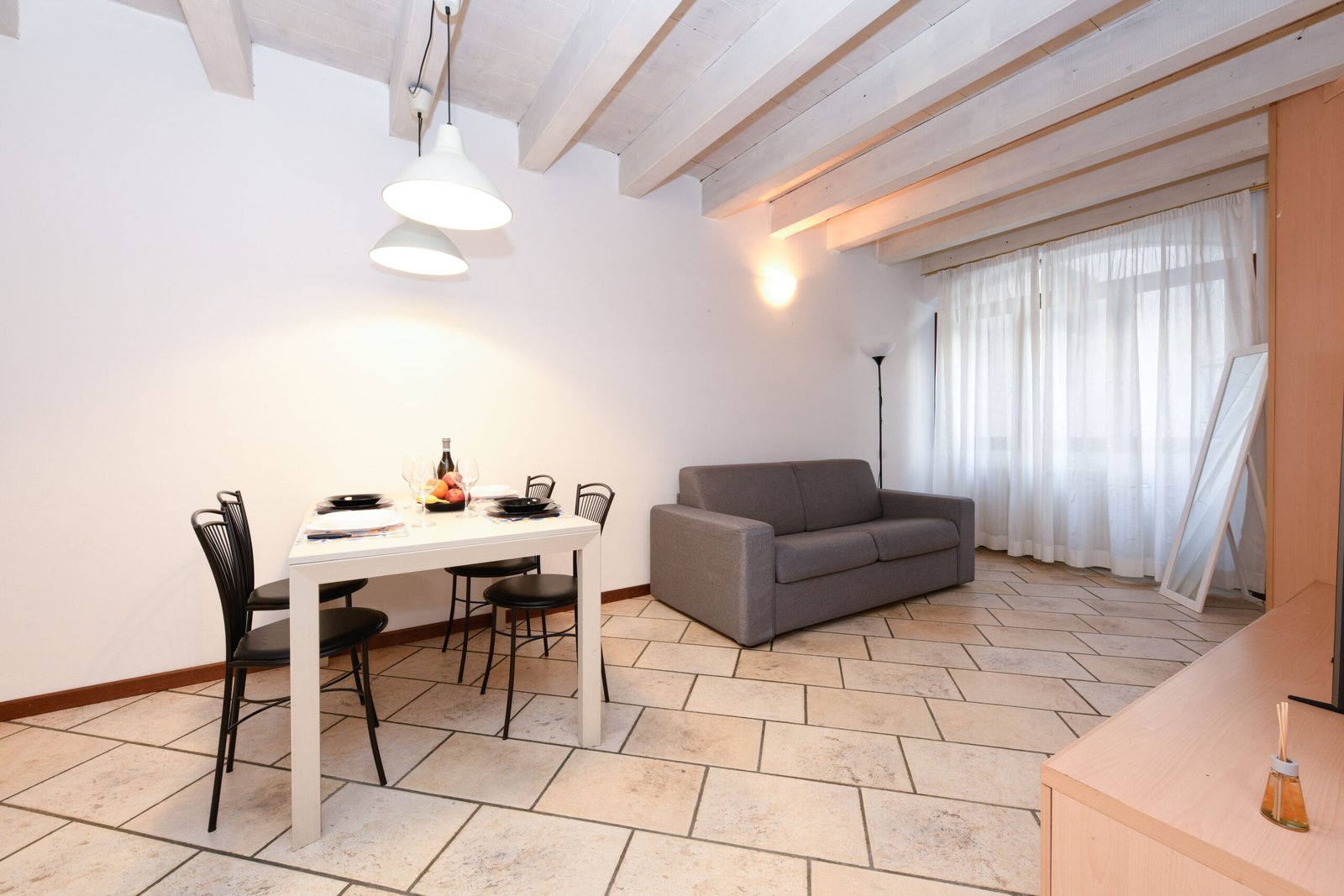L’appartamento è una casa storica del centro di Desenzano Del Garda a due passi dal Lago in piazza Porto vecchio. Ha una camera matrimoniale, cucina attrezzata e soggiorno con divano letto matrimoniale e bagno dotato di wc, bidet e doccia.